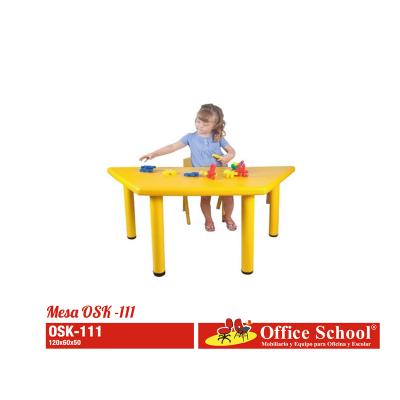 Mesa trapezoidal de 120x60x50 cm en polipropileno con 4 regatones de hule de alta durabilidad en color negro. Variedad de colores.