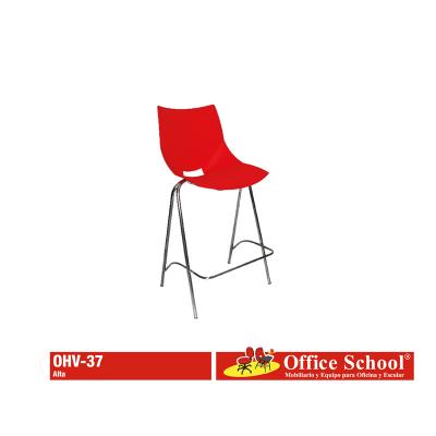 estructura de perfil redondo tubular de acero en 3/4 calibre 16 con terminado en cromo respaldo y asiento en copolímero de polipropileno de una sola pieza fijado con pijas 4 regatones tipo planos internos color negro, con una resistencia de 90 kgs.