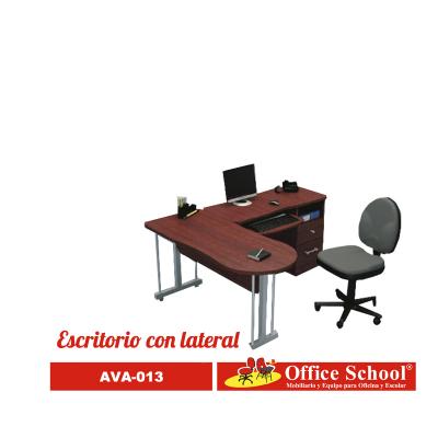 Escritorio con lateral operativo 160x160 con 2 cajones y entrepaño y portateclado en Melamina y en Metal.