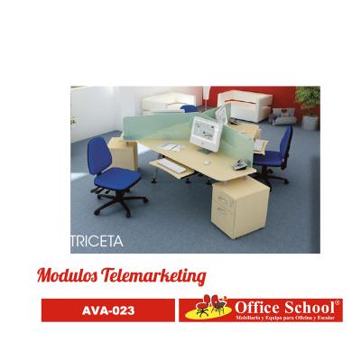 Modulo telemarketing triceta con mampras de cristal para 3 personas en Melamina y Cristal
