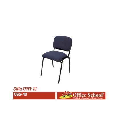 Silla con estructura tubular de 7/8" calibre 16 de metal acabo color negro con soportes para el apoyo del asiento tubular de 7/8 calibre 16, respaldo y asiento en tapiz de tela acojinado con 4 regatones tipo bola color negro.