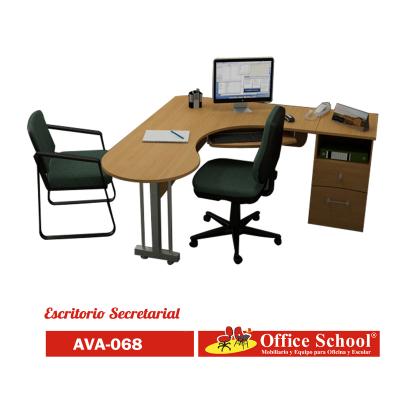 escritorio secretarial de 140x180 con lateral con 2 cajones y entrepaños.
