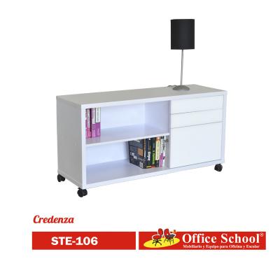 Credenza con 2 cajones chicos y 1 grande y 2 entrep. C/ruedas 120x40x66 ALT. Material - Melamina