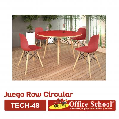 Juego Row 4 sillas Row polipropileno y madera. *Silla row de polibropileno y madera (verde, turqueza, roja,negra y blanca) Mesa row cubierta redonda 120 diam. base tipo row madera-varilla
