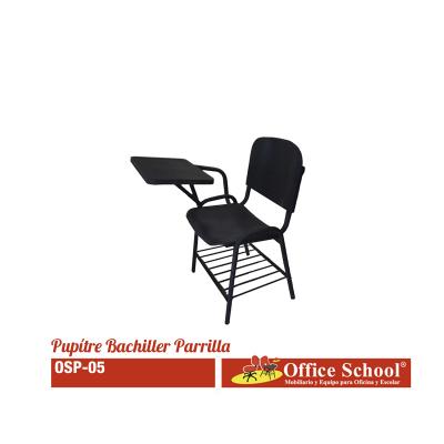 Asiento y Respaldo de Polipropileno, unidos a la estruc. c/8 remaches tipo pop de aluminio Ala ancha, Estruc. tubular redondo de 1¨ cal. 18, c/parrilla portalibros de varilla de 1/4, Paleta de lamina embutida cal. 22, terminada c/pintura electrost