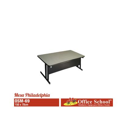 150x70 cm con cubierta en melamina y base en metal.